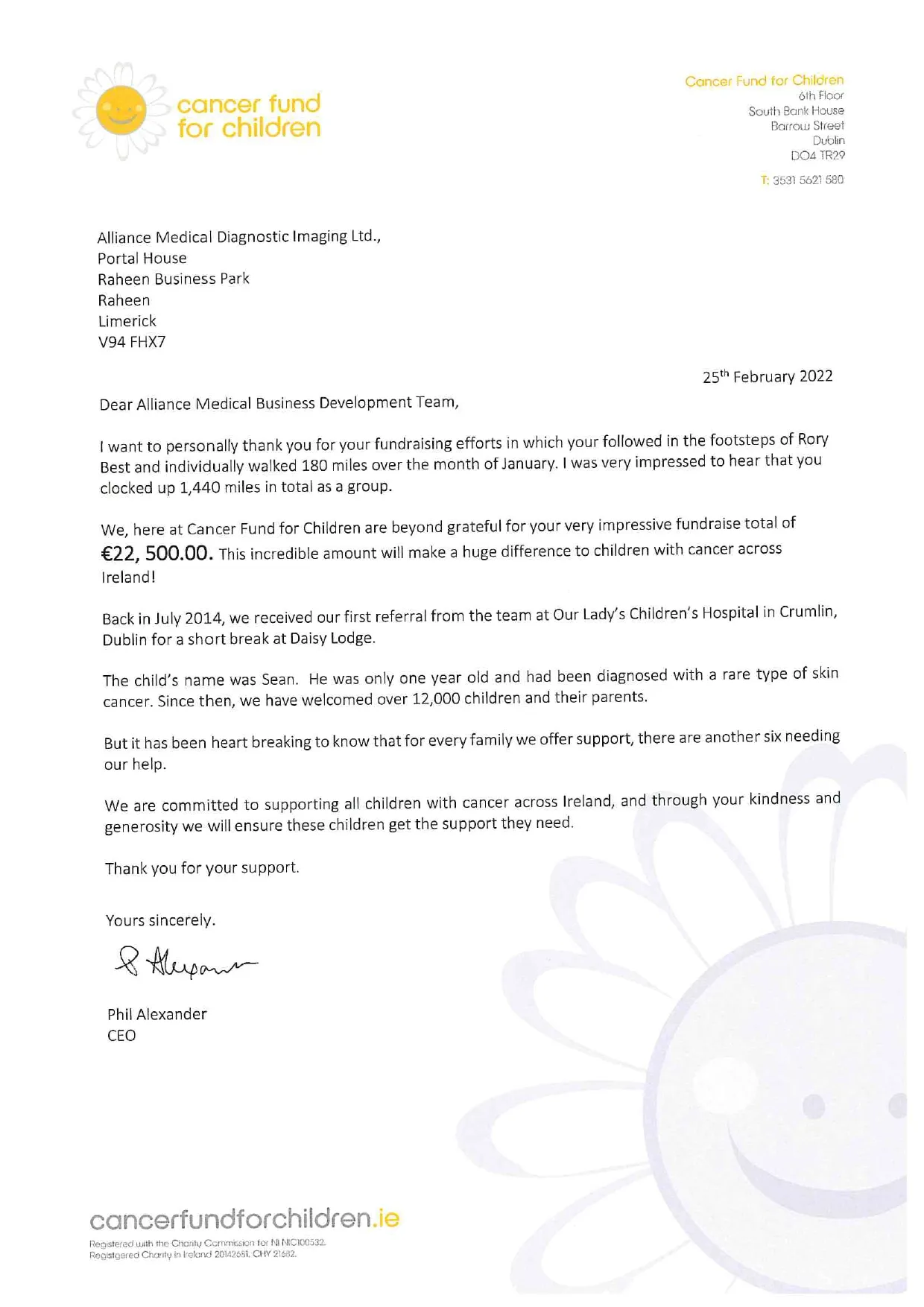 These funds will go directly to the charity to help them provide their amazing services for children and families impacted by cancer.